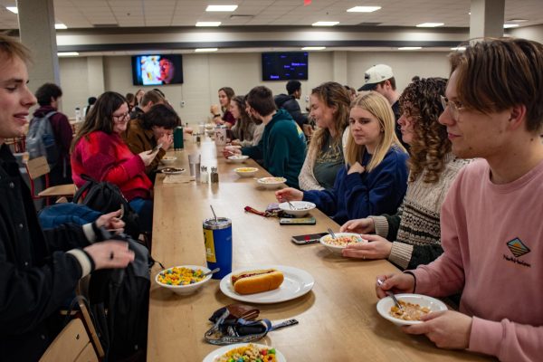 Diners at Crossroads were met with quite the bizarre sight on Feb. 2 as a group of around 30 people flooded into the cafeteria at 5 p.m., swiping their Cougar Cards and forming a single-file line in front of the cereal dispensers. The group then retreated to the long high-top tables, determined to eat every last Lucky Charm, Cocoa Puff, and Cheerio.