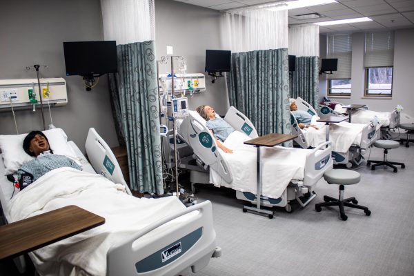 These tools are housed in the simulation lab on the third floor of the Christopher Center on campus. The lab celebrated its third anniversary on Feb. 14 after being transformed from an office space. Close to $1.5 million from donors, fundraising, and specific nursing grants was spent on building this lab and outfitting the space with the necessary equipment.